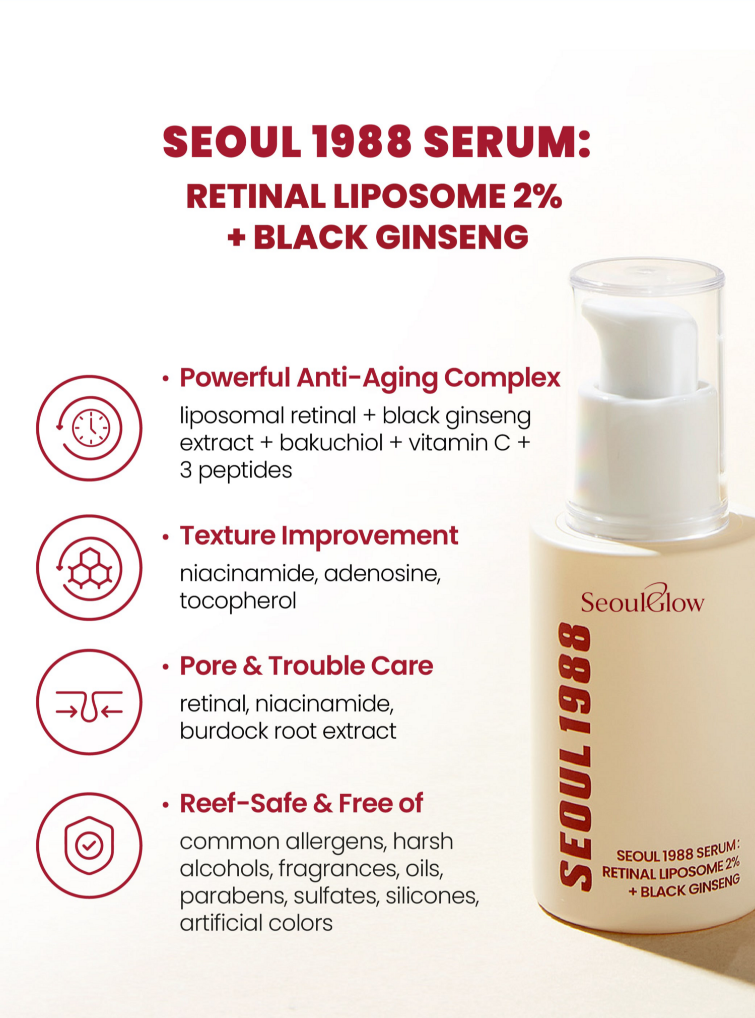 This product contains retinal encapsulated in liposomes, which improves stability and penetration. “4% retinal liposome” typically equals about 0.04% pure retinal—a gentle but effective dose for beginners